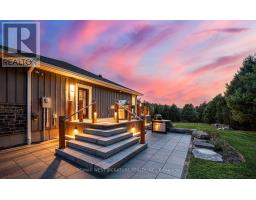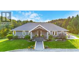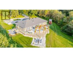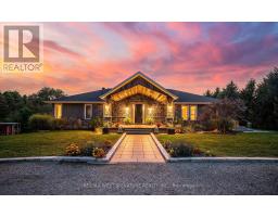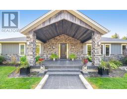 Stunning custom built bungalow on 5 majestic acres built to the highest standards with $$$ on upgrades & finishes! Superb floor plan with high ceilings, large great room with stone feature wall and fireplace, chef inspired kitchen with Italian Marble tops, breakfast bar and top of the line appliances! Primary bedroom is an oasis with 5pc ensuite and walk-in dressing room. Heated floors, solid doors, hardwood flooring, freshly painted, unspoiled walkout basement has high ceilings and is perfect for in-law suite, home theatre & wine room! The 1400sf stone deck is an entertainer's dream with outdoor kitchen, BBQ area, built-In cabinetry, glass railings and hydropool hot tub! Beautiful private property with mature trees, Muskoka inspired landscaping, granite front porch, large timber frame construction, stone decks and patios, clear views and well set back from road Must be Seen! (id:47351)