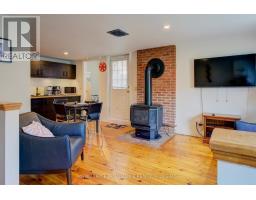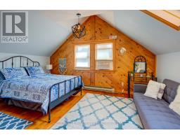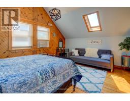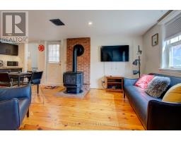 Charming two story home in Bagot offering a warm blend of rustic character and modern comfort, tucked away from the street for added privacy while still being just steps from all the action of downtown. This thoughtfully designed 780 sq. ft. residence features 2 bedrooms, 2 bathrooms, and well planned living spaces that maximize functionality and natural light. The 480 sq. ft. main floor includes a welcoming living room with pine flooring, a large wall mounted TV, and comfortable seating. The adjoining kitchen showcases dark cabinetry and wooden countertops, complemented by a bright dining area with a glass top table-an ideal layout for everyday living and entertaining. Upstairs, the 300 sq. ft. second level offers one inviting bedroom. The primary bedroom (180 sq. ft.) features a striking knotty pine accent wall, metal frame bed, geometric lighting, and generous windows. The second bedroom provides a serene, coastal inspired atmosphere perfect for guests or a quiet retreat. The home's bathroom is compact yet efficient, complete with a glass enclosed shower, modern vanity, and a skylight that fills the space with natural light. A dedicated laundry area with full sized appliances adds convenience. Warm wood tones throughout the home pair beautifully with crisp white walls, creating a bright, cozy, and contemporary feel. Hidden quietly behind the historic façade of Bagot Street lies a rare cottage retreat just steps from downtown. Walk to waterfront parks, restaurants, cafés, and boutique shops while enjoying the privacy of a tucked-away setting. A unique opportunity to live in the heart of Kingston without sacrificing tranquility. Walking distance from Hotel Deu, Kingston General, Queen's University. (id:47351)