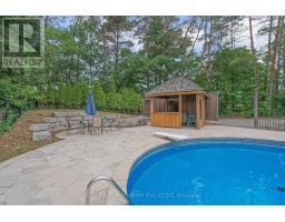Discover this unique and spacious 5-bedroom, 5 Bath home designed for multi-generational living (5,475 sq. ft.) featuring 5 acres mixed forested land. A 5-car plus garage with heated floors, drive in door for your RV & an additional underground heated garage for parking or workshop with a hidden games room. A standout feature of this property is the elevator in the garage, which leads to a spacious & sunny 1 bedroom apartment perfect for extended family or guests. It's an opportunity for a car enthusiast's dream or multi-generational family! Walk-out Basement features large built-in library, furnished home office, family/TV room with adjacent snack bar, cold cellar with chest freezer and fridge. Main floor laundry, west facing primary bedroom with balcony, kitchen with vaulted ceiling and skylights with walkout to 3 season screened in deck overlooking in-ground heated pool with cabana & hot tub. Upgrades Include: GeoThermal System (2022), Propane Fireplaces & Sweetheart Wood Burning Fireplace in kitchen; Renovated Principal Bathroom 2019, Laundry Room 2024, Air Conditioner 2020; Septic & Drilled Well 2005, Pool Heat Pump 2021. (id:47351)