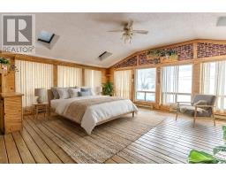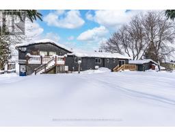 GEORGIAN BAY VIEWS, A RARE DOUBLE LOT, DETACHED OUTBUILDING, & ROOM TO REIMAGINE IN SOUGHT-AFTER PARADISE POINT! Bring your vision to this European-inspired side-split with Georgian Bay views, and just under half an acre, set in the heart of Paradise Point, where marina access, beaches, and parks shape everyday life. Patterson Park sits across the road with playground and beach access, and a short drive connects you to Midland's shopping, dining, and daily essentials. The 120 x 166 ft fenced lot features multiple updated decks, a detached 392 sq ft outbuilding that's ideal for a future workshop, hobby space, or exercise studio, plus a garden shed. A metal roof, updated front landscaping with granite steps, flagstone walkway, and retaining walls, along with updated siding, eaves, soffit, fascia, and added insulation, provide a solid exterior starting point. The attached two-car garage with inside entry features an updated insulated garage door and side-mounted LiftMaster opener, complemented by two driveways with room for multiple vehicles, boats, trailers, or an RV. Over 3,100 finished square feet are spread across multiple levels, offering a flexible layout with separate entry options and a front walkout that supports in-law capability or short-term rental potential. A sunlit main level includes a large kitchen and dining area with a walkout, plus a living room anchored by a wood-burning fireplace with a brick surround. A massive primary bedroom with a walkout, Whirlpool Tub, kitchenette, and bar adds serious flexibility for entertaining or relaxing, while the partially finished lower level offers a rec room with a second wood-burning fireplace plus a bar with built-in wine storage. Western exposure delivers unforgettable sunsets and Georgian Bay views from multiple rooms throughout the home. A well-suited #HomeToStay for contractors, renovators, and vision-driven buyers. (id:47351)