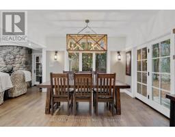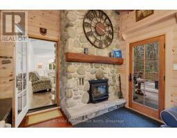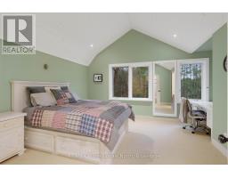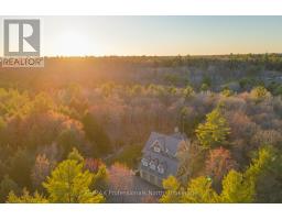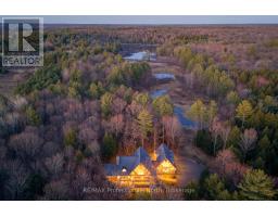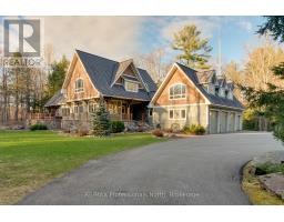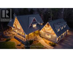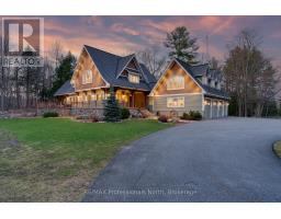 Welcome to an extraordinary private estate in the heart of Muskoka, where refined design meets the natural beauty of the surrounding landscape. Offering over 7000 square feet of thoughtfully crafted living space, this impressive property includes a 1000 square foot heated garage with floor drains and a finished loft above, along with three fully finished levels designed for elevated everyday living. At the centre of the home is a custom kitchen with premium appliances and exceptional attention to detail, seamlessly opening into the main living area where a stunning custom stone wood burning fireplace creates a striking focal point. Just beyond, the Muskoka room offers a peaceful escape surrounded by windows that draw the outdoors in, complete with a wood burning fireplace for year round comfort. A dedicated main floor office provides the perfect balance of productivity and connection. The second level hosts three spacious bedrooms, each with vaulted ceilings, walk in closets, and private ensuites with heated floors, while a fourth bedroom with its own bathroom is located on the lower level. The fully soundproofed lower level is designed for entertainment, featuring an eight seat tiered theatre, wet bar, and versatile bonus space ideal for a studio, gym, or playroom. Set on 16.74 acres of private land, the property features approximately half a kilometre of professionally built trails, three serene ponds for paddling or skating, and an invisible dog fence covering five acres. An automatic Kohler generator powers the entire home for added peace of mind. Located along Muskoka Beach Road, one of the region's most iconic drives known for its stunning fall colours, this property offers a rare blend of privacy and convenience just minutes to Bracebridge and Gravenhurst and close to several renowned golf courses. Floor plans and feature sheet available. (id:47351)