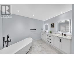 This beautifully upgraded home sits on a premium corner lot with no sidewalk, offering extra space, privacy, and outstanding curb appeal. Featuring a double car garage and parking for four additional cars on the driveway, this home perfectly blends style and functionality. Upgrades include a modern kitchen with a large island and stainless-steel appliances, four renovated washrooms, engineered hardwood flooring, fresh paint throughout, pot lights on the second floor, and elegant light fixtures on the main level. The main floor offers a spacious family room ideal for gatherings, a bright living area, and a modern kitchen with ample cabinetry. An elegant chocolate oak staircase leads to the second level, featuring four spacious bedrooms plus an optional fifth bedroom or office, providing flexibility for growing families or remote work. The primary suite showcases a luxurious 5-piece ensuite and walk-in closet, while the second floor includes two additional full bathrooms for ultimate convenience. Enjoy outdoor living in the fenced backyard complete with a beautifully interlocked patio, perfect for entertaining family and friends. Additional highlights include central vacuum, garage access from inside, and a large unfinished basement offering endless potential to design your dream space. (id:47351)