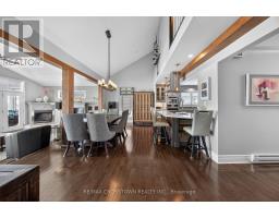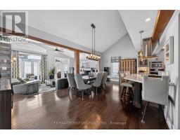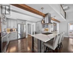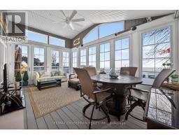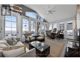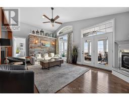 What a treat! Delightful home, meticulously cared for. Custom Designed Kitchen with top quality Cambria Counters. Jennair Gas Range, built in double oven and terrific breakfast bar (Ideal for guests while entertaining & chef duties are happening)... that makes me think of the handy wine fridge.! Spacious dining area, suitable for large table & vaulted ceiling adds drama... flowing beautifully to the sunken living room, with built-in cabinets and cozy gas fireplace. All of this with gorgeous view of the sparkling sun on the water. (Isn't that what lakefront living is all about?) Main floor Primary Bedroom offers convenient privacy and another amazing view of the lake...along with a walkout to the deck and waterfront. The Primary Ensuite is awesome, heated floors, stand-alone tub, glass shower...just so nice! Then the large walk-in closet is perfectly positioned and well suited to handle your wardrobe. The main floor laundry and garage entrance make for handy access and convenience. Walk up the hardwood stairs, across the loft view over the great living areas and find a private bedroom area, with it's own 4pc ensuite (heated floors, no less). The waterfront is easy access, gently sloping with a terrific dock system (composite surface) approx 60ft long. Now, you can't miss the gracious size and high ceiling in the amazing sun room (very adjustable windows & screens) which can extend your enjoyment so much of the year. The Vieto Radiant heaters and custom blinds ensure you have all the comfort options you can imagine. All year long you can surely relax in the Jacuzzi Hot Tub, and there are 2 separate gas line hook-ups for BBQ etc. Worry free is a good thing, hence the full home Generac Generator is standing by at your service to ensure no interruptions...even during that dinner party, or waterfront gathering. Nice! (id:47351)