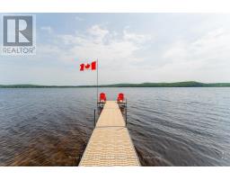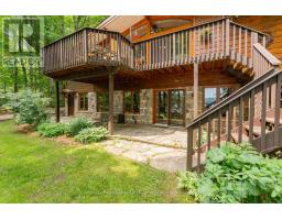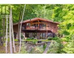This cherished year-round waterfront home on Pickerel Lake, formerly known as 'Lasting Impressions', is ready for its next chapter. Nestled on a beautifully landscaped and private 0.8-acre lot with 100 feet of natural shoreline, this cherished retreat offers four-season comfort, tranquility, and endless recreation. Enjoy breathtaking lake views, sandy beach entry, deep water off the dock for swimming and boating, and a private snowmobile path to the lake. Mature trees, perennial gardens, and a peaceful waterfall beside a flagstone patio create a truly serene outdoor haven. You're welcomed by a striking granite stone entrance while beautiful flagstone steps lead to the lake, and front and rear decks offer multiple places to relax or entertain. Crafted with top-quality B.C. red cedar on all buildings, the main home features a warm and functional layout with 3+1 bedrooms upstairs and 2 more in the finished walkout basement. The inviting living room with lake views boasts a stunning fieldstone propane fireplace, and the stylish Cutters Edge kitchen has ample cabinetry, and a Vermont Castings propane stove in the dining area. Comfort and efficiency abound with propane radiant in-floor heating on both levels, a new heat pump with A/C, hot water on demand, drilled well, a woodstove (WETT certified), lake-drawn water system for the gardens, and a generator for backup power. Additional highlights include a massive 40' x 26' insulated/heated workshop with hydro, an oversized double garage, attached woodshed, propane BBQ hookup, invisible dog fence, and a charming cedar bunkie, ideal for guests, a studio, or a creative retreat. Plentiful parking accommodates vehicles, trailers, ATVs, snowmobiles, and more. Located on a well-maintained year-round road just 15 minutes from Hwy 11 and Burks Falls and close to OFSC trails! A rare and lovingly maintained property offering year-round lakeside living at its best -your Pickerel Lake paradise awaits! (id:47351)