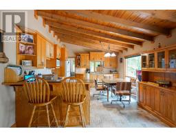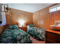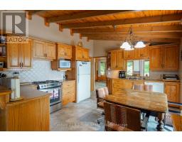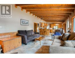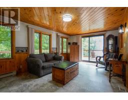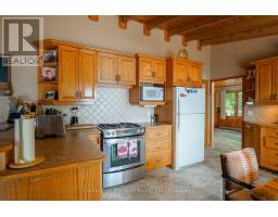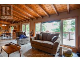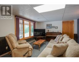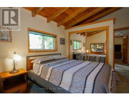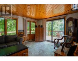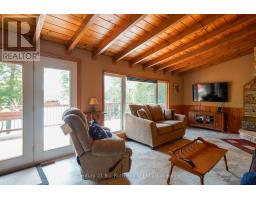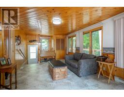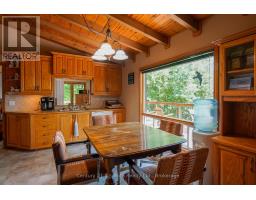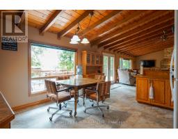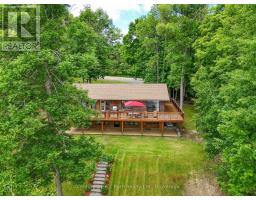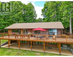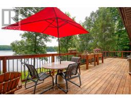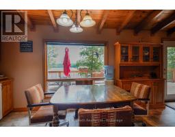 Welcome to this beautifully maintained year-round waterfront home on Restoule Lake, cherished by the same family for decades. Situated on over an acre of landscaped grounds, the property features mature trees, stunning rock outcroppings, a manicured lawn, and a gentle slope to approximately 200 ft of shoreline on the highly sought-after 14 km long Restoule Lake. Offering approximately 2,300 sq ft of finished living space, this home includes 4 bedrooms and 2 bathrooms. The main floor features a bright open-concept layout designed to capture lake views, with an eat-in kitchen, dining room (or office) with walkout, and a living room with walkout to the full-length elevated deck-perfect for entertaining or relaxing while enjoying the waterfront scenery. A woodstove adds warmth and charm for cozy winter evenings. Two bedrooms (one with walk-in closet), a 3-piece bath, and ample storage complete the main level. The finished walkout lower level offers a spacious family room, laundry area, office nook, two additional bedrooms, and a second 3-piece bathroom. A workshop/utility room with overhead door provides easy access for storage and recreational equipment. Additional features include a detached 32'3" x 24'3" insulated and heated garage/shop with 60-amp panel and a finished loft above with new flooring, ideal for guests or studio space. The home is serviced by 200-amp electrical, forced-air propane furnace (new 2026), central air, central vacuum, septic system, and lake water with UV system. Updated flooring and eavestroughs with gutter guards. High-speed internet and Bell Satellite available. Restoule Lake offers excellent swimming, boating, and fishing including Pike, Bass, Pickerel, Lake Trout, and world-class Muskie. Close to ATV and OFSC trails, Restoule Provincial Park, and acres of Crown land. Located on a quiet private road ($200/year maintenance) with friendly neighbours. Quick closing available. Excellent short-term rental opportunity. (id:47351)