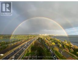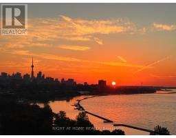 A sweeping panorama of Toronto's most iconic landscapes surrounds this 1+1 bedroom, 1-bath offering 695 sq. ft. of bright, functional living with an east-facing skyline view, shimmering lake vistas to the south, and the tranquil Humber River to the north. The beautifully enhanced kitchen features stainless steel GE Profile appliances, solid Bancroft wood cabinetry, quartz countertops, a stone backsplash, and under-cabinet lighting, creating a refined and modern culinary space. This exceptional unit includes one parking space and one locker, adding everyday convenience and value. Steps from Sunnyside Beach, High Park, and the Martin Goodman Trail, and served by four transit lines with a quick 15-minute commute to Downtown Toronto, the location blends nature, recreation, and urban access seamlessly. Residents enjoy a 24-hour concierge, gym, yoga/ping-pong room, cards & billiards room, meeting and party spaces, and a rooftop serenity garden with BBQs, picnic tables, and sweeping lake views, plus visitor parking. Presented with select virtual staging and also shown vacant, the suite offers versatility for both end-users and investors, with a tenant in place providing immediate income potential. (id:47351)