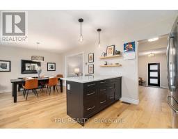 Beautifully renovated side-split home offering 4+1 bedrooms and two distinct living areas, perfectly suited for growing families, multi-generational living or a home business. A major renovation has transformed the main level into a bright, modern open-concept living and dining space, ideal for both everyday living and effortless entertaining. The completely updated kitchen features a big, bright breakfast bar with quartz counters and silestone counters contrast the cabinets. A rare separate side entrance leads to a thoughtfully designed mudroom/ laundry combination, enhancing functionality, traffic flow, and the practical needs of modern family life. Perfect for a multigenerational family or home business with separate entrance. The upper level features a private primary retreat complete with a 3-piece ensuite and walk-in closet, along with three additional generously sized bedrooms and a full family bathroom including a jet tub. The lower level offers a bonus fifth bedroom and multiple versatile spaces, perfect for a family room, home office, hobby space, or guest suite. Additionally downstairs you will find a recroom featuring a rock climbing wall ideal for young kids. Thoughtful updates throughout seamlessly blend contemporary finishes with functional design, creating a truly move-in-ready home in an exceptional location. Step outside to a fully fenced backyard designed for enjoyment, featuring a massive multi-level deck, outdoor gas hookup and propane fire pit. Large windows and open sightlines connect the interior to the outdoors, while the home backs directly onto an expansive park. Enjoy unparalleled privacy and sweeping views of walking paths, playgrounds, and soccer fields-an incredible extension of your own backyard and a rare setting for active families. A rare opportunity to own a turnkey home with direct park access, tucked away on a quiet crescent. (id:47351)