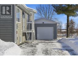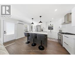 Move-in ready and beautifully renovated, this 4 bedroom, 2 bathroom home sits on an impressive 87' x 262' lot with no rear neighbours, right in the heart of Clarence Creek! The fully renovated main floor is sure to impress with its inviting open concept layout and tasteful finishes throughout, highlighted by beautiful 6" oak hardwood floors. Be prepared to be wowed by the stunning renovated kitchen (2024) featuring crisp white cabinetry, quartz countertops, striking black hardware, classic white subway tile backsplash and stainless steel appliances, including a gas range. A stylish bar area with mini refrigerator and a massive centre island with seating anchor the space, all overlooking the sun-filled living room - Perfect for everyday living and entertaining! The bedroom area offers a generous primary bedroom, a spacious secondary bedroom and a beautifully designed bathroom (2024) complete with bold black finishes, hexagon tile and a sleek glass shower. A convenient side entrance leads directly to the basement stairs, making this an ideal setup for a potential in-law suite. The basement boasts high ceilings and oversized windows throughout, creating a bright and welcoming lower level that includes a versatile family room, two additional bedrooms, a full bathroom and a laundry room with plenty of storage. Outside, enjoy the paved driveway leading to the detached garage, offering ample space for a vehicle and additional storage, and extending to the fully fenced backyard-perfect for kids and pets. Great convenient location, minutes to Rockland with all possible amenities and easy commute to Ottawa! Many major updates done in the recent years - windows & exterior doors 2025, gas stove 2024, heat pumps 2024, roof 2018, paint 2024-25 & more. Simply move in and enjoy! (id:47351)