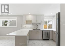 Welcome to this newly and fully renovated detached bungalow located in a desirable neighbourhood of London. This carpet-free home showcases modern elegance, upscale finishes, and an abundance of natural light throughout. Designed with style and functionality in mind, the home features pot lights, oversized windows, and sophisticated designer light fixtures that create a bright and inviting atmosphere in every room. The contemporary kitchen is a true showpiece, complete with stainless steel appliances, sleek cabinetry, quartz countertops, and a matching quartz backsplash offering a refined space ideal for both everyday living and entertaining. Boasting 3+3 spacious bedrooms and 5 full bathrooms, this home provides exceptional flexibility for large or multi-generational families. Two of the bedrooms feature ensuite bathrooms, offering added comfort and convenience. The fully finished basement is seamlessly integrated into the main residence and includes additional living space and a stylish wet bar; perfect for hosting or creating a private entertainment retreat. Situated on a huge lot, the property offers an extended private driveway accommodating up to 5 vehicles, plus a detached 1.5-car garage. The garage is currently being upgraded with a theatre-room concept, creating a unique future 2-in-1 space for parking or entertainment. Enjoy a massive backyard ideal for outdoor gatherings and relaxation. (id:47351)