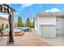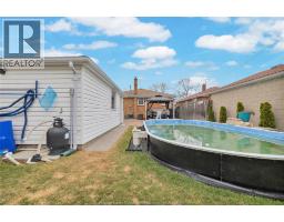 Trendy and tastefully renovated brick ranch perfect for entertaining! This gorgeous home features amazing curb appeal, open floor plan, large eat in kitchen (2020) with ample cabinetry, natural light and beautifully appointed upgrades. 3 beds on main plus a full bath(2020). No rear neighbours backing onto Ford test track, fully fenced in backyard with detached 1.5 car garage and on ground pool with waterfall (2020), stamped concrete and gazebo(2021). Finished bsmt with family room, storage with built in shelving and second full bathroom. Home is accessible with ramp and custom front door. close to schools, shopping, walking trails, parks. (id:47351)