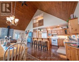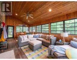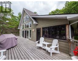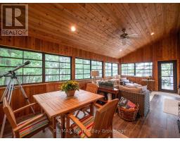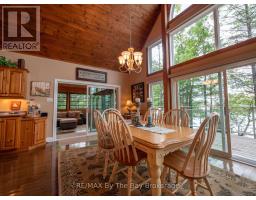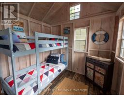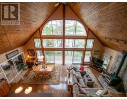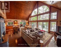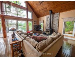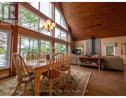 Welcome to 331 feet of pristine, west-facing rocky shoreline and crystal-clear deep water, where sunsets steal the show and every day feels like a retreat.This exceptional boat-access property features a beautifully maintained 3-bedroom cottage plus a professionally built bunkie, offering the perfect setup for hosting family and friends. The expansive dock and waterfront deck create multiple spaces for lounging, entertaining, and soaking in the peaceful views across this quiet, family-oriented bay.Inside, the heart of the cottage is a stunning great room with soaring vaulted ceilings, a cozy wood-burning stove, and dramatic floor-to-ceiling windows that perfectly frame the lake. The spacious kitchen is ideal for gathering and entertaining, with generous prep space and seamless sightlines to the water.A fully updated sunroom (2015) adds even more living space and is the perfect spot for morning coffee or evening unwinding. Upstairs, the elegant loft-style primary suite with private ensuite offers a peaceful, elevated retreat.A ductless Mitsubishi heating and air conditioning system allows for comfortable use in both summer and winter, extending your cottage season year-round.Just a short paddle to McCrae Lake Conservation Reserve and only 15 minutes by boat from the nearest marina.Boat access only. Total privacy. Ultimate escape. (id:47351)