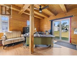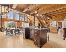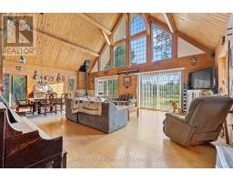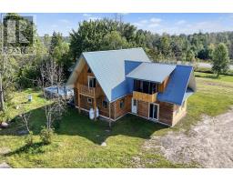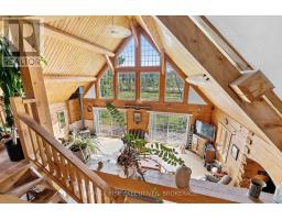 A Rare Find. Look no further! This 3000 +/- Handcrafted log and timber-frame home is situated on 5+/- acres just south of Elgin. Craftsmanship at its finest. Enter into the large open concept 20 x 30 great room with cathedral ceilings, exposed timbers, loft and plenty of windows for natural light. Upstairs the bedrooms are spacious, (see floor plans) with the Primary bedroom having a 3 piece ensuite, cathedral ceiling's and a 6' x 12' covered deck. There is a main floor office area or potential bedroom. Outside you will love sitting on the 10 x 52 covered porch enjoying your surroundings. Radiant in floor heat (main floor/upper bath) and a woodstove, well you can sense the coziness. A 26 x 32 workshop and 30 x 50 coverall (new 2023) allow for plenty of storage and hobby activities. This property has huge potential. Great exposure for that home based business you have always dreamed of. Move into the house and walk to work across the driveway. Zoned Residential/Commercial so a lot of business opportunities Close to all village amenities and area lakes where boating and fishing are favorite pastimes. Call to arrange your private viewing and discuss this great opportunity. Mid way between Toronto and Montreal. (id:47351)