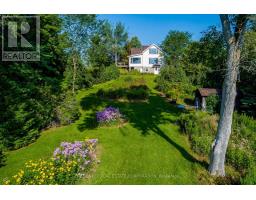 Year-round living on Beautiful Private Waterfront Lot on Edge of Picturesque Lakefield, 15 min to Peterborough 103' ft of waterfront, east facing for sunrises to enjoy! Sparkling bright east & south windows four Season sun room with W/O to large newer deck overlooking serene Lake, sunroom has corner fireplace ( propane). Bright 3 bedroom 1.5 storey home has double attached garage. Large updated kitchen with main floor laundry, two bathrooms ( 3 pc on main floor & 3 pc on 2nd floor). W/O basement. Forced Air Electric Furnace with Heat Pump & Central Air. High speed internet in this area!! Photos with furnishings are from when the house was professionally staged. (id:47351)