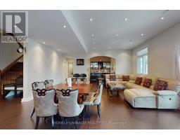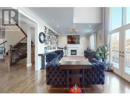 Welcome to this beautiful custom-built home located in Pickering. Standing on nearly 6,000sq.ft., including the walk-out basement, the home greets you with an impressive double doorgrand entry to a long, inviting hallway that flows smoothly into the generous family & formaldining rooms. The house features 9ft. ceilings, hardwood floors, crown moulding, pot lights, &oak stairs with wrought iron spindles. The iconic living, dining, & kitchen, is perfect forspending time with family or hosting friends. A dramatic, ~20ft long floor-to-ceiling glasswall floods the space with natural light all day long. The second-floor mezzanine overlookingthe living room, gives a loft-like feel that allows a connection between the two levels. Theview from the second-floor, especially during winter evenings, feels like you're looking outfrom a hill-top chalet. The gourmet kitchen boasts a large center island, granite counters,custom cabinetry, & stainless-steel appliances. The 3-piece washroom on the main floor sitsbeside a generous room with closet; perfect for multi-generational living or benefits familymembers with mobility issues. The expansive second floor (~2,200 sq.ft.) offers 5 spaciousbedrooms, 3 luxurious washrooms, and laundry room. The primary suite features His & Her walk-inclosets & 5-piece washroom with dual vanity, soaker tub & large standing shower. A secondprimary bedroom with ensuite, two additional bedrooms with Jack & Jill washroom, & the 5thbedroom can be creatively used as an office, yoga/Pilates room, prayer room, playroom for thekids, or library; the options are endless. At ~1900 sq.ft., the bright walkout basement withpot lights, built-In-bar, 3-piece washroom & ample storage space is perfect for largegatherings. Conveniently located mins away from 401, Shopping Plazas, tons of restaurants,grocery stores, and top Durham schools this home blends architectural elegance with moderncomfort. A rare executive offering-book your showing today. (id:47351)