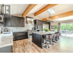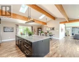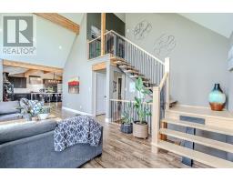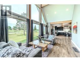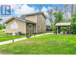 BOLD ARCHITECTURE, LUXURY UPGRADES, A HEATED 3-BAY SHOP, & SEPARATE 200 AMP SERVICE TO BOTH THE HOUSE & THE SHOP ON OVER HALF AN ACRE OF COUNTRY LIVING! Step into this 2019 Linwood home offering over 3,300 sq ft of finished living space on a beautifully landscaped half-acre lot, just minutes from downtown Elmvale. Enjoy an unmatched lifestyle close to Wasaga Beach, the Elmvale Jungle Zoo, Tiny Marsh, parks, schools, a library, an arena, and beloved community events like the Maple Syrup Festival and Fall Fair. This property is designed to impress, with a striking A-frame roofline, oversized triple-pane windows, double-door entry, manicured gardens, a stone patio, gazebo, and full landscape lighting with built-in irrigation. The heated and insulated detached shop with 3 garage doors, a commercial-grade Liftmaster opener, and dedicated 200 amp service is a dream for hobbyists and professionals alike. Inside, vaulted ceilings with exposed Douglas Fir beams, floor-to-ceiling windows, skylights, and designer LED lighting create an unforgettable interior. The modern kitchen boasts quartz counters, dark shaker cabinets, tile backsplash, an under-mount sink, island seating, and premium Jennair appliances, opening to a stylish dining space with wide patio doors, and a breathtaking living room. A skylit family room and two main floor bedrooms served by a 4-piece bath elevate everyday comfort, while a custom maple staircase with an engineered steel mono stringer leads to a loft-style primary suite with a custom walk-in closet and an ensuite with an air jet tub and imported Italian glass shower. The partially finished basement adds a rec room, bedroom, full bath, and a utility room with a tankless water heater, softener, UV system, and 4-filter water treatment. With a Generac and blown-in insulation for added efficiency, every detail is thoughtfully crafted to create an extraordinary lifestyle, and a truly rare opportunity to live and entertain in style! (id:47351)