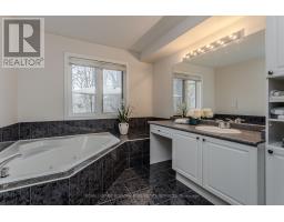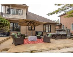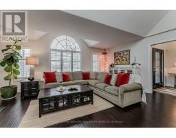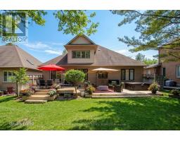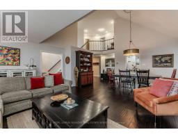 Rare find! Welcome to an exquisite bungaloft nestled in the highly sought-after Tyandaga Oaks community-where refined living meets nature. Backing onto a serene ravine with amazing views, this exceptional home offers over 3000 sf of thoughtfully designed living space on a quiet, family-friendly street, just mins from all everyday amenities. From the moment you arrive, the curb appeal sets the tone, with mature trees, arbourstone retaining wall, and an interlock driveway creating an inviting first impression. Step inside to a bright, open-concept main floor where rich hardwood flooring, soaring ceilings, and California shutters elevate every space. The welcoming entry flows seamlessly into a dining area and a spectacular living room featuring a dramatic arch window, vaulted ceilings, and a cozy gas fireplace. The spacious eat-in kitchen is complete with granite countertops, a subway tile backsplash, and a charming breakfast nook with walkout to the backyard. A separate family room offers additional space to relax and unwind. The main level also features a beautifully updated powder room and an expansive primary retreat with a walk-in closet, additional closet, and a luxurious 4-piece ensuite with jetted tub and walk-in shower. Upstairs, the loft-style second level showcases hardwood throughout, a generous bedroom, and a full 4-piece bathroom-perfect for guests or growing families. The fully finished lower level is carpet-free and offers incredible versatility with a large rec room and an additional oversized flex space ideal for a home theatre, gym, or extra bedroom. Step outside to your private backyard oasis, where a dual-tiered wooden deck, hot tub, and lush green space overlook tranquil ravine views-an idyllic setting for entertaining or enjoying peaceful moments surrounded by nature. A rare gem that blends luxury, comfort, and natural beauty-this is a home designed for those who appreciate lifestyle living at its finest. (id:47351)