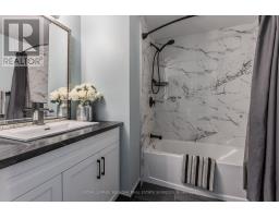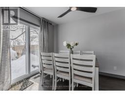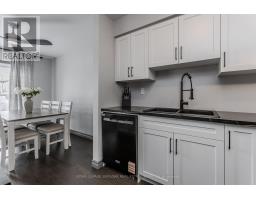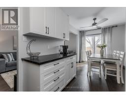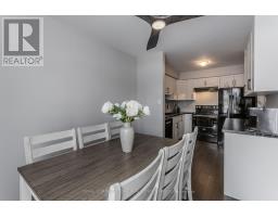 Welcome to an exceptional end-unit townhome offering over 1,100 sq ft of total living space, nestled in the highly sought-after Tyandaga community-a true lifestyle setting perfect for growing families. Completely transformed in March 2025, this home was ripped to the studs and thoughtfully rebuilt, delivering peace of mind, modern finishes, and turnkey living from top to bottom. Backing directly onto a park and bike trail, enjoy tranquil views, outdoor adventures, and a family-friendly atmosphere right outside your door. An inviting covered front porch with seating and a lovely perennial garden creates a welcoming first impression. Inside, every detail has been upgraded, including all new windows and exterior doors, hand-scraped hickory hardwood flooring throughout, updated light fixtures, and fresh paint for a bright, cohesive feel. The sun-filled main floor features an open-concept layout designed for everyday living and entertaining. The spacious living room is anchored by a large bay window, while the dining area offers a walkout to the rear deck and a remote-controlled light and fan-perfect for family meals or hosting friends. The custom kitchen is both stylish and functional, showcasing stone countertops, premium black stainless steel appliances, designer faucet, custom cabinetry, deep pots-and-pans drawers, and a dedicated coffee bar. Upstairs, the generous primary bedroom is filled with natural light, complemented by two additional well-sized bedrooms and a luxurious 4-piece bath featuring large slab tile flooring, a tiled tub/shower combo, and sleek black hardware. Out back, the fully fenced yard offers privacy and mature trees, with a wooden deck ideal for family BBQs, playtime, or unwinding while overlooking the peaceful park setting. Turnkey with thoughtful upgrades, park-side views, and a welcoming community feel, this home offers the lifestyle families are searching for. (id:47351)