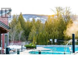 Team Tiger presents Mountain House at Blue Mountain | Azure Building. Experience refined four-season living in this exceptional ground-floor 2-bedroom, 2-bathroom residence, ideally positioned within the highly coveted Azure building at Mountain House. Just steps from Blue Mountain Village and the Scandinave Spa, this home offers the perfect balance of resort convenience and private retreat. The thoughtfully designed open-concept kitchen features integrated appliances, quartz countertops, and a spacious breakfast bar, seamlessly connecting to the living area-ideal for entertaining or relaxed après-ski evenings. Expansive sliding glass doors lead to a covered private patio with a dedicated BBQ gas connection, creating an effortless indoor-outdoor lifestyle. Enjoy picturesque ski hill views during the winter months and the tranquility of mature tree cover in summer, with frequent wildlife sightings enhancing the natural setting. Both bedrooms are generously sized, while the upgraded bathrooms deliver a clean, modern, spa-inspired finish. A standout feature is the walk-in laundry closet offering additional gear storage, complemented by a separate in-suite storage room-perfect for skis, bikes, and outdoor equipment. Residents enjoy exclusive access to the Nordic-inspired Zephyr Springs, featuring outdoor pool, Hot Tub Pool sauna, yoga studio, and fully equipped fitness centre. Surrounded by hiking trails, pristine beaches, and renowned golf courses, this is a premier destination for year-round recreation and lifestyle enjoyment. An outstanding opportunity to own in one of Blue Mountain's most prestigious and lifestyle-driven communities. (id:47351)