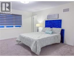 Stunning 4-bedroom, 4-bath luxury home by LIV Communities (The Boughton 5, Elev. C, 2023) featuring an elegant stone/stucco/brick exterior. Bright open-concept design with 9-ft ceilings, engineered hardwood floors, and a great room showcasing an elegant electric fireplace and large window. The chef’s kitchen boasts custom built-in stainless-steel appliances, glossy European-style cabinetry, a lantern glass backsplash, quartz island, and upgraded lighting. Builder-installed pot lights throughout the main floor enhance the space on cloudy days. Convenient garage access to the mudroom and basement provides easy entry to the unfinished lower level—ready for your own creative vision. The upper level offers a refined primary retreat with double doors, a spa-inspired 6-piece ensuite, soaking tub, glass shower, and his-and-her closets. The second bedroom includes a private ensuite with a sleek glass standing shower and raised ceiling. The third bedroom features a decorative exterior balcony view, while the fourth bedroom offers flexibility for a growing family or home office. This home delivers space, upgrades, and functionality in all the right places. Prime location minutes to Hwy 403, Brant Sports Complex, top-rated schools, trails, shopping, and dining. Extras: Lantern glass backsplash, builder-installed pot lights (main floor), motorized window coverings (main floor), undermount sinks, white quartz countertops throughout, glossy European style cabinetry throughout (washrooms/kitchen), upgraded light fixtures, upper-level laundry room, bidets (2 washrooms), electric fireplace, oak stairs and built-in appliances. (id:47351)