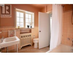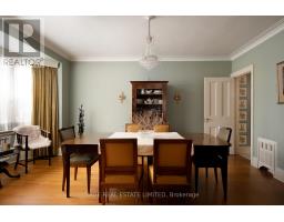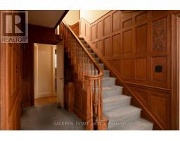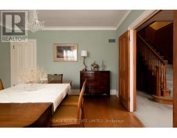 CLASSIC ARCHITECTURE FOR A MODERN FAMILY. Georgian-inspired and rich in original detail, this classic centre hall residence reflects the symmetry and proportion that define The Kingsway's most enduring homes. Prominently positioned on a generous corner lot, it carries a quiet sense of presence - established, refined, and built to last. Offering over 2,800 square feet above grade, the home features generous principal rooms arranged in a traditional layout that balances openness with separation for family living. A vintage marble fireplace anchors the living room, while the foyer welcomes with original wood panelling that introduces warmth and character rarely replicated today. The second floor includes four spacious bedrooms and three bathrooms, along with thoughtful built-in storage and a cedar closet. The lower level spans over 1,200 square feet, with approximately 700 square feet finished, including a recreation area with a bar and wood-burning fireplace. The remaining space provides exceptional storage and utility. Outside, the tree-lined side yard offers a private garden setting within the established streetscape that defines The Kingsway. (id:47351)