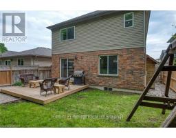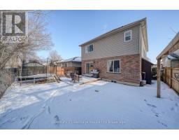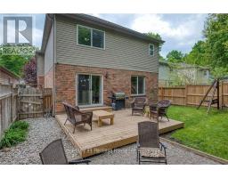 Welcome to this beautifully upgraded two-storey home in the desirable South Woodstock community, situated on a private lot with no rear neighbours. This spacious family home offers 4 bedrooms, 3.5 bathrooms, a double-car attached heated garage, and a fully finished basement. The striking brick exterior is complemented by a double-wide freshly sealed driveway (2022) and inviting front porch. Inside, enjoy a tiled foyer with garage access and powder room, hardwood floors and custom wainscoting in the formal dining room, and a living room with coffered ceilings open to the stunning kitchen featuring a large island, pendant lighting, modern countertops, chic cabinetry, and an updated walk-in pantry (2022). Patio doors lead to a new deck (2021) and fully fenced private yard. Upstairs, the primary suite features his-and-hers closets (2020) and a luxurious ensuite with glass shower, quartz countertop, and corner jetted tub. One of the additional bedrooms features a fireplace installed in 2024 and new windows added in2025. Three additional bedrooms and a full bathroom complete the second level. The finished basement includes a rec room with fireplace and custom built-ins, bonus room with closet, laundry, 3-piece bath, and a custom kids' playhouse. Additional updates include a new Furnace (2026), new Sump Pump (2026), new A/C unit (2022). Close to schools, community complex, hospital, and with quick highway access-this home has it all (id:47351)