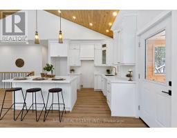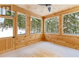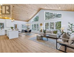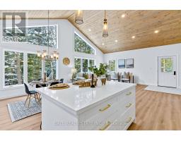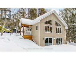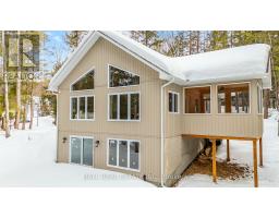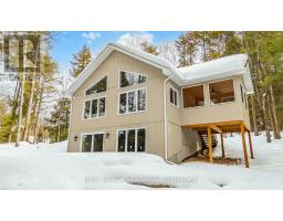 Welcome to this thoughtfully designed 2025 custom bungalow, offering approximately 1,200 sq.ft. of well-planned living space and the perfect blend of modern comfort with an in-town rural feel. The main floor features a bright, open-concept living, dining, kitchen area, highlighted by vaulted pine ceilings and abundant natural light. The custom kitchen is finished with quartz countertops and quality cabinetry, flowing seamlessly into the main living space-ideal for everyday living and entertaining. Durable luxury vinyl flooring runs throughout the main level, complemented by spacious bedrooms with large closets. The primary bedroom offers a walk-in closet and a private 4-piece ensuite, while a second 4-piece bathroom and convenient main-floor laundry complete the level. Additional quality finishes include North Star windows, an asphalt shingle roof, and a welcoming front deck. At the rear, enjoy a 12' x 12' pine screened-in room with direct access to the backyard-perfect for relaxing and enjoying the natural surroundings. Full ICF foundation and features a bright walk out basement with oversized windows and a patio door, allowing for excellent future living potential. The basement is partially finished, with electrical completed, partial drywall installed, and rough-in for a third bathroom already in place. Mechanical systems include a propane furnace, owned hot water tank, 200 AMP panel and HRV system. Set on a beautifully treed lot, the property backs onto a natural escarpment, creating a private & peaceful backyard. Located on a municipally maintained road with underground hydro, phone, and internet, and accented by stylish street lanterns, this quiet dead-end cul-de-sac offers minimal traffic and a strong sense of community. All within walking distance to Haliburton Village, surrounded by custom homes, and designed to preserve a true rural atmosphere while still enjoying the convenience of town amenities. (id:47351)