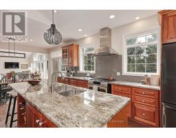 Welcome to 180 Russell, a beautiful brick home offering privacy, elegance, and exceptional outdoor living. Set on a rolling lot with professionally landscaped grounds, this property showcases stone walkways, soldier stone along the drive, a stamped concrete walkway, and multiple outdoor spaces designed for year-round enjoyment. The highlight is the backyard retreat featuring a waterfall, outdoor fireplace, expansive deck, covered patios, and a walk-out lower level with its own full kitchen perfect for effortless entertaining. Inside, the main level offers a bright, open layout where the kitchen, dining, and living areas flow together, anchored by sliding doors to a large deck overlooking the private yard. The primary suite features his and her closets and a spa-like ensuite with heated floors, while a versatile office/den and full bathroom provide flexibility. Convenient laundry and garage access complete the main floor. The fully finished lower level is ideal for gatherings, with a spacious family room and gas fireplace, three additional bedrooms, a full bath, and a two-piece bath. Radiant in-floor heating adds year-round comfort, while the second kitchen is thoughtfully equipped with a cooktop, sink, dishwasher, bar fridge, and beverage fridge designed with outdoor living in mind. With its own walk-outs, bedrooms, bathrooms, and kitchen, this level also offers the potential to create a private in-law suite. Additional features include a covered front porch, a two-car garage with inside entry, beautifully designed landscaping, and a Wi-Fi enabled smart irrigation system for effortless lawn and garden care. With its exceptional outdoor living areas, generous indoor space, and peaceful setting, this home offers the perfect combination of privacy, function, and beauty. (id:47351)