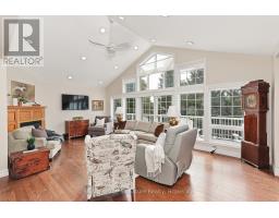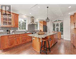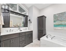 Welcome to 180 Russell, an exceptional brick residence that blends privacy, elegance, and outstanding outdoor living. Set on a rolling, professionally landscaped lot, the property is framed by stone walkways, soldier stone detailing along the driveway, and a stamped concrete entry, creating striking curb appeal from the moment you arrive. Designed for year-round enjoyment, the backyard is a true retreat, featuring a tranquil waterfall, outdoor fireplace, expansive deck, covered patios, and a walk-out lower level-perfect for effortless entertaining and relaxed outdoor living. Inside, the main level offers a bright, open-concept layout where the kitchen, dining, and living areas flow seamlessly together. Large sliding doors extend the living space to a generous deck overlooking the private, serene yard. The primary suite is a private haven with his-and-hers closets and a spa-inspired ensuite with heated floors. A flexible office or den, a full bathroom, convenient laundry, and direct garage access complete the main floor. The fully finished lower level is ideal for hosting and extended family, featuring a spacious family room with gas fireplace, three additional bedrooms, a full bath, and a two-piece bath. Radiant in-floor heating ensures year-round comfort, while the thoughtfully designed second kitchen-equipped with a cooktop, sink, dishwasher, bar fridge, and beverage fridge-enhances both indoor and outdoor entertaining. With its own walk-outs, bedrooms, bathrooms, and kitchen, this level also offers excellent potential for a private in-law suite.Additional highlights include a covered front porch, a two-car garage with inside entry, beautifully curated landscaping, and a Wi-Fi-enabled smart irrigation system for easy lawn and garden maintenance. With its exceptional outdoor spaces, generous interior layout, and peaceful setting, 180 Russell delivers the perfect balance of comfort, functionality, and refined living. (id:47351)