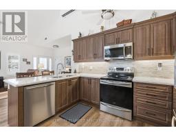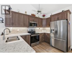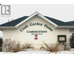 Superb, sublime one-level bungalow condo townhome enhanced by numerous quality upgrades throughout. A covered front entrance porch welcomes you home. Quietly tucked away from parking and neighboring units, this townhome offers exceptional privacy overlooking the manicured lawns and park, situated within the sought-after Croft Garden Condos. Airy 9-foot ceilings, an abundance of large windows including Palladian window, dressed with California shutters, create a bright, welcoming interior with sunny South West views. The stunning Kitchen features Quartz countertops, a Stone Backsplash, Stainless Steel Appliances, light brown wood Cabinetry with Crown Molding, trim, and under-mount lighting, plus a Quartz Peninsula Island-perfect for entertaining & socializing. High-grade Luxury Vinyl Laminate flooring and upgraded Lighting Fixtures and fans complete the refined look throughout. The main bath also boasts a Quartz countertop, while the oversized laundry room offers Custom Built-in Cabinetry, Shelving, and Countertop, along with a front-load washer and dryer and ample storage. Additional features include a retractable screen and custom blinds on the front door and sidelight windows & a newly installed Heat Pump/A/C wall unit. Your exclusive parking space is close to the unit and there is also nearby Visitor parking. Low condo fees cover exterior maintenance and include insurance, water, common elements, reserve fund, groundskeeping, and professional property management-ideal for a lock-up-and-go lifestyle and perfect for snowbirds. Enjoy an elegant, low-maintenance lifestyle close to all amenities and conveniences. Located minutes from Port Hope near grocery stores, recreation centre, clinic, and pharmacy, and just a short distance to the charming historic downtown and Ganaraska River walking trails. Approx. 70 km to Toronto, with VIA Rail station in-town for easy day trips. Flexible closing available. Condo Fee: $392.05 (id:47351)