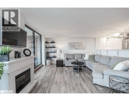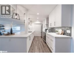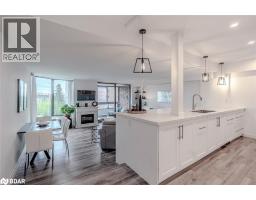 STUNNING, FULLY RENOVATED CONDO WITH OPEN-CONCEPT MODERN DESIGN, LAKE VIEWS, STEPS FROM THE WATERFRONT & THE BEST OF CITY LIVING! Live in the heart of it all with this upgraded Killdeer-style unit in Barrie’s vibrant City Centre, providing the ideal mix of comfort, convenience, and captivating views. Fully renovated with care and style, this unit stands out from the rest with fresh, modern finishes and a long list of thoughtful upgrades throughout. From the moment you step inside, you'll notice the attention to detail, starting with the stunning chef-inspired kitchen featuring an oversized island with bonus storage, quartz countertops, stainless steel appliances, and ample prep space. The airy living and dining area opens to a private enclosed balcony that showcases stunning views of Kempenfelt Bay. The thoughtfully designed floor plan separates the bedrooms for added privacy, with a spacious primary suite complete with a walk-in closet and 3-piece ensuite. Concrete ceilings add a touch of modern style to the bedrooms, complemented by updated pot lights, and durable laminate flooring throughout. Additional highlights include a dedicated laundry room and generous in-unit storage. Residents enjoy top-tier amenities including an indoor pool, sauna, fitness centre, tennis court, games room, meeting space, and visitor parking, while an exclusive parking space and a dedicated locker storage unit complete the package. Just steps from shops, restaurants, entertainment, and year-round community events, this location puts everything within reach - including Kempenfelt Park, the scenic North Shore Trail, and Johnson’s Beach. Enjoy a highly walkable lifestyle with the added ease of being less than 10 minutes from Highway 400, perfect for stress-free commuting. This exceptional #HomeToStay provides stylish, low-maintenance living with spectacular views, unbeatable walkability, and resort-style amenities - all in one of Barrie’s most dynamic and connected locations. (id:47351)