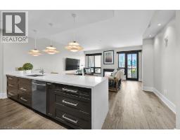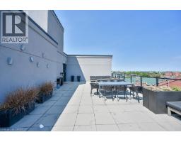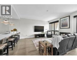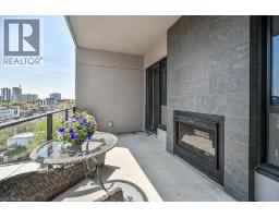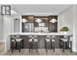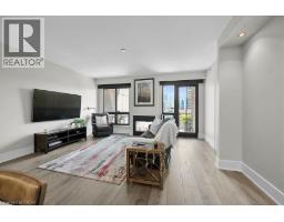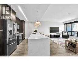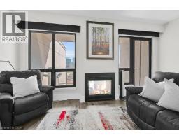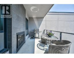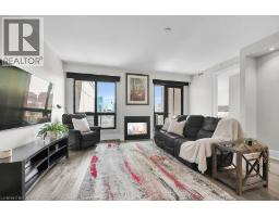PH4 – Luxury Penthouse in the Heart of James North A rare opportunity—this 1,391 sq. ft. two-bedroom + den, two-bath penthouse offers two owned indoor parking spaces and refined upgrades throughout. Perched on the 8th floor with southern exposure, it’s set in the vibrant James North Arts & Restaurant District, steps from cafés, galleries, shops, Bayfront Park, and the West Harbour GO. The custom Barzotti kitchen boasts upgraded appliances, oversized quartz countertops, a waterfall island, and designer pendant lighting, flowing into a bright living area with south-facing windows. An indoor/outdoor double-sided fireplace opens to a covered balcony—perfect for year-round entertaining. Luxury touches are everywhere: soaring 9’ ceilings, elegant 7’ doors, wood flooring, custom motorized window shades, upgraded shower towers, pocket doors, and future-ready wiring. The primary suite features a walk-in closet with built-ins and a 4-piece ensuite with oversized tub and separate shower. The second bedroom also has a walk-in closet and southern exposure, while the versatile den is ideal for a home office. A laundry area with storage, walk-in storage closet, and a new heating/cooling system (2025) add convenience. The building offers secure entry, exercise room, rooftop terrace, and indoor visitor parking. Condo fees include heat, water, and gas—you only pay hydro. Easy access to Hwy 403. Sophisticated design, prime location, and rare extras—this penthouse truly has it all. (id:47351)