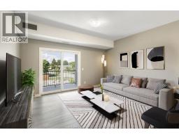 Experience luxury living in this 4Y Village South Condominium. This 2nd-floor, 1,200 sqft unit in a boutique 3-storey building offers 2 spacious bedrooms and 2 full bathrooms. Featuring an open-concept kitchen with contemporary cabinetry, quartz countertops, and an upgraded premium stainless steel appliance package, this home blends modern style with functionality. Enjoy hard-surface flooring throughout, a generous primary suite with walk-in closet and ensuite, in-suite laundry, and a private balcony with metal railing. Building amenities include elevator, accessible parking, and visitor parking. Price includes water, water heater, one parking space, and exterior/grounds maintenance. Conveniently located with a bus stop at Division & Woodward, walking distance to Devonwood Conservation Area, and just minutes from the new Battery Plant, Amazon warehouse, schools, parks, shopping, restaurants, Highway 401, and airport. (id:47351)