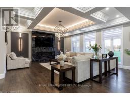 Experience refined country living in this custom-built 2-storey home, privately set 350' back on nearly 2 acres with sweeping pastoral views. A grand foyer with 20' ceilings and porcelain floors sets the tone for the quality and craftsmanship throughout. The chef's kitchen impresses with quartz counters/backsplash, high-end appliances, 8-burner gas range, cappuccino bar, and walk-in butler's pantry, opening to the Great Room with 10' coffered ceilings, hardwood floors, gas fireplace, custom lighting, and built-in sound. Entertain indoors or out with the expansive covered deck. A formal dining room with 15' coffered ceilings and oversized windows captures natural light and scenery. On the upper level, 9' ceilings enhance the serene primary suite with spa-inspired ensuite, plus a second bedroom with private 4-pc bath and two more bedrooms sharing a 5 pce. Jack & Jill bath. The fully finished lower level offers a large rec room (rough-in for kitchen or wet bar), gym, storage, and two additional bedrooms-each with their own bath-perfect for in-law or multi-generational living. Additional highlights include: a 4.5-car garage with inside entry to spacious mudroom with laundry room w/ built ins, side by side washer & dryer & lge. walk in closet, the fully fenced deep backyard with room for your dream oasis, would that include an inpool, court &/or gardens. A rare blend of space, sophistication, and flexibility-your private oasis awaits. (id:47351)