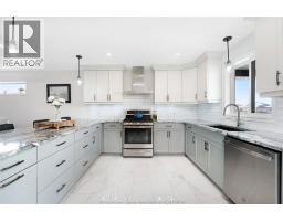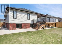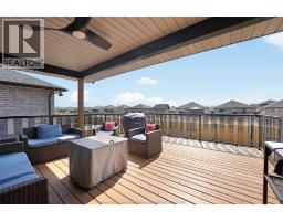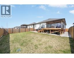 Gorgeous DeThomasis custom-built approx. 1,490 sq ft raised ranch in the highly sought-after Kingsbridge South subdivision, backing onto open green space with no rear neighbours. This beautifully designed 3-bedroom, 2-bath home features a bright, open-concept layout highlighted by a spacious living room with hardwood floors flowing seamlessly into a custom kitchen with granite countertops—ideal for everyday living and entertaining. A separate dining area adds both function and charm. The primary bedroom offers a walk-in closet and a private ensuite. Additional highlights include top-quality features and finishes throughout, an oversized covered rear deck for outdoor enjoyment, and a convenient grade entrance through the garage to the basement, providing excellent future potential. A warm, well-crafted home that perfectly blends comfort, quality, and location. (id:47351)