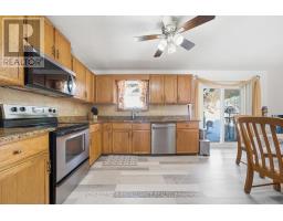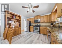 Escape the hustle without sacrificing convenience. Tucked away on a peaceful cul-de-sac just minutes from Downtown and 401 access, 3+1 bedroom raised bungalow offers the perfect balance of serenity and connectivity.The main level greets you with a sun-drenched living room featuring hardwood floors. For the home chef, the eat-in kitchen is outfitted with granite countertops, stainless steel appliances, and ample cabinetry. Transition seamlessly to outdoor living through the patio doors, leading to a private back deck and gazebo designed for summer BBQs and starlit gatherings.The primary bedroom offers a spacious double closet, accompanied by two additional bright bedrooms on the main floor. Downstairs, the finished lower level expands your living space significantly. French doors lead to a versatile fourth bedroom and a large rec room/games area-perfect for a home theater or play zone. With a second 3-piece bath and abundant storage, this home is as practical as it is charming.Updates; Front stairway, front door, patio door, ROOF 2016, HEAT PUMP 2019 (id:47351)