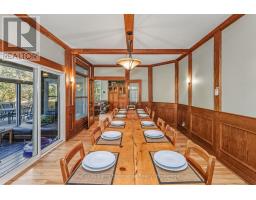 Discover a rare and extraordinary opportunity to own more than 20 acres of pristine Muskoka forest with over 1,600 feet of private waterfront along the shores of 6 Mile Lake.This exceptional property combines the rustic charm of cottage living with the space, comfort, and quality expected in a luxury retreat. Spanning over 3,600 sq. ft., this expansive 8-bedroom, home offers endless possibilities - whether you envision a family compound, corporate getaway, or serene private retreat.As you arrive, a grand covered porch and wide front hall welcome you inside. The wood staircase sets the tone for the home's warm and timeless character. Two distinct wings are seamlessly connected by a spacious dining room with a walkout to a three-season sunroom - perfect for relaxing on a rainy day.The main floor features two wood-burning fireplaces framed in hand-picked stone, three inviting living areas, and a bright, open kitchen with floor-to-ceiling windows offering sweeping lake views. Stone countertops, ample cabinetry, and generous workspace make it both functional and elegant.Step outside onto the massive wrap-around deck, ideal for entertaining, dining, or enjoying a quiet morning coffee. Unwind in the hot tub overlooking the forest and lake, or relax on the private balconies, shared by the two primary bedrooms. Follow the wooded path down to your expansive private dock, where you'll be surrounded by untouched shoreline - a rare find in Muskoka.Additional features include a detached garage and workshop with carport, perfect for storing watercraft, ATVs, and equipment. A metal roof ensures durability and peace of mind for years to come. This property offers complete privacy, yet remains just minutes from Highway 400 and under two hours from Toronto. Whether as a family retreat, investment opportunity, or exclusive private getaway, this remarkable 6 Mile Lake property embodies the best of Muskoka living - where luxury meets nature. (id:47351)