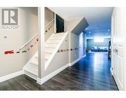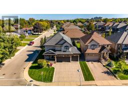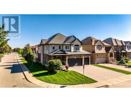 Welcome to this breathtaking Galli Custom-Built 4+1 bedroom, 4-bathroom home offering a coveted corner lot in the sought-after Gilbert neighbourhood on the Hamilton Mountain. Showcasing timeless elegance, and premium finishes, this home blends modern luxury with everyday comfort. A rare triple-car garage with roll-through access to the backyard, an exposed aggregate driveway and patio, and professionally landscaped grounds with multiple areas to relax and entertain create a standout exterior. Bathed in natural light from three sides, the home enjoys a bright, airy feel with views of surrounding greenery. Inside, a soaring two-storey loft foyer with a grand chandelier sets the tone. The open-concept main floor features a formal dining area and a sophisticated living room with a stone accent wall, electric fireplace, floating wood shelves, and a built-in media niche. The stunning custom kitchen is complete with stainless steel appliances, beveled grey subway tile backsplash, and a striking live-edge maple island. Upstairs, four spacious bedrooms offer comfort and functionality, most with walk-in closets and two with private ensuites. The primary retreat features a spa-like ensuite with an oversized glass shower and double vanity, while a separate full bath with a tub serves the remaining bedrooms. A second-floor laundry room, complemented by an additional lower-level laundry, adds convenience for busy or multigenerational households. The fully finished lower level is designed for entertaining, offering a spacious great room, custom media and home theatre setup, a built-in framed aquarium, an additional bedroom, and bathroom. Additional highlights include upgraded lighting throughout, a built-in speaker system, and a security system. Ideally located steps to parks and minutes from the Lincoln M. Alexander Parkway, QEW, Ancaster Meadowlands, and top amenities, this turnkey home offers an elevated lifestyle in one of Hamilton Mountain's most desirable communities. (id:47351)