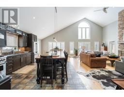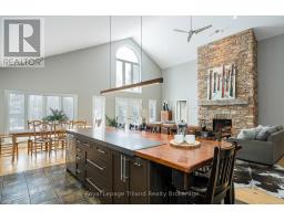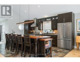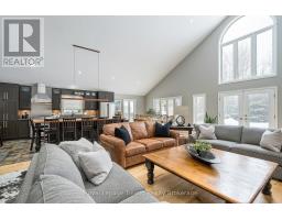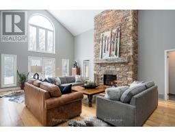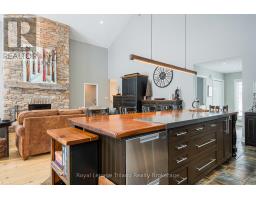 Where the trail ends, something exceptional begins! Tucked into Mount View Estates - a neighborhood known by those who know & valued for privacy over publicity - this custom-built, meticulous 5-bedroom, 3-bath chalet-style bungalow was designed for year-round living & gatherings. Set back from the road & framed by mature trees, the .46-acre lot offers tranquility & privacy. A covered front porch opens to a soaring Great Room with 18.5 ft cathedral ceilings & a floor-to-ceiling custom stone fireplace with Rumford insert. Wide-plank wood floors anchor the space, while oversized windows flood it with natural light. The dining area easily hosts a table for all & flows into a gourmet kitchen anchored by a Viking Professional gas range, quartz counters, custom cabinetry & high-end appliances. A 12' island seating 8+ keeps conversation lingering long after dinner ends! Main-floor living includes a primary retreat with 2 closets, garden door to the deck & an updated 4-pce ensuite with heated flrs, double vanity & glass shower. The laundry with quartz & built-ins flexes as office, ski tuning or hobby rm. The lower offers 4 additional bedrooms, family room, updated 4-pce bath & guest space with private entry via the covered side porch. The expansive 860 sf deck with 2 retractable awnings extends the living space outdoors - ideal for entertaining & starlit evenings by the fire. Board-and-batten exterior nods to authentic Collingwood character. Amenities include EV charging, RV hookup, fenced yard & parking for 6. Residents share ownership & use of 6.3 acres of protected lands & trails along Silver Creek's natural corridor. Minutes to Blue Mountain Resort, private ski clubs, Scandinave Spa, Georgian Bay, hiking & biking trails, golf & historic downtown Collingwood - close to everything, yet removed from Village traffic. From ski days to sunset swims, golf rounds to early morning fishing on the Bay - every season has its moment. Experience Trails End - imagine what begins here! (id:47351)