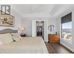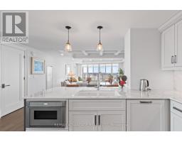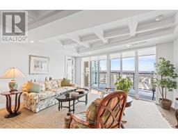 Enjoy luxury living at Bridgewater Private Residences on the lake in downtown Burlington. This 1571 square foot, 2 bedroom plus den corner suite has two private balconies, one with a gas line for a barbecue. The spacious living room and dining room feature a custom coffered ceiling and floor to ceiling windows overlooking sweeping views of Lake Ontario and the Burlington-Toronto skyline. The kitchen is equipped with Thermidor appliances, a large island and upgraded cabinetry, countertops and backsplash. The master bedroom offers a walk-in-closet and a spacious bathroom with heated floors. The comfortable den, the second bedroom and bathroom, a spacious utility cupboard, and in suite laundry facility complete the unit. Also included are 2 parking spaces and a storage locker. Residents enjoy many amenities including a large 8th floor terrace with barbecues, two fitness centres, an indoor pool and spa, bike storage, valet visitor parking, a large party room with billiards and a piano, monthly social events, and direct access to the Pearle Hotel, Isabelle restaurant, and Pearle Café. Bridgewater Private Residences offers downtown living on the lake, combined with convenient access to highways and Burlington GO facilities, the perfect blend of elegance and convenience. (id:47351)