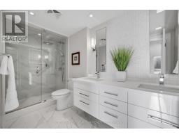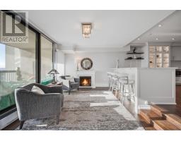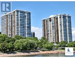 Completely renovated luxury condo in the prestigious Ennisclare II on the Lake, showcasing exceptional craftsmanship and high-end finishes throughout. This exquisite 2-bedroom, 2-bath residence offers elegant living space designed for comfort, convenience, and entertaining. The airy layout features hardwood floors throughout, smooth ceilings, crown moulding, custom millwork, 8 inch baseboards, glass railings, pot lights, floor-to-ceiling windows, motorized blinds integrated with home automation. The gourmet kitchen includes quartz countertops, designer backsplash, premium stainless steel appliances, hidden built-in microwave, extensive cabinetry, pot drawers, built-in organizers, glass display cabinets with accent lighting, and an eat-in breakfast area overlooking the family room. Spacious family room with floor-to-ceiling sliding doors walks out to a balcony offering breathtaking, lake views. Formal living and dining area features large picture windows and elegant architectural detailing. The primary bedroom retreat offers a custom feature wall, and an expansive walk-in closet. Spa-inspired ensuite includes a double vanity with quartz counters and a stand-alone shower. Generous second bedroom, additional 3-piece bath, and convenient ensuite laundry with sink and storage complete the suite. Includes one underground parking space equipped with a Level 2 EV charger and access to a private locker. Residents enjoy resort-style amenities including 24-hour gated security, indoor pool, hot tub, sauna, fitness and yoga studios, tennis and squash courts, party and games rooms, library, golf driving range, woodworking and art studios, car wash, and terraced gardens and private access to the public walkway and paths along the lake and a clubhouse overlooking Lake Ontario. Ideally located steps to Bronte Harbour, Lake Ontario, waterfront trails, parks, boutique shopping, dining, QEW, and transit. (id:47351)