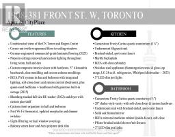 With 34 feet of wraparound floor-to-ceiling windows and unobstructed views of the CN Tower and Rogers Centre from every angle, unit 1908 at 381 Front St. W. offers a truly one-of-a-kind downtown living experience. This 1+1 bed, 1 bath, corner suite offers 733 square feet of living space and a highly functional layout, thoughtfully separating the sleeping quarters from the kitchen and main living and entertaining areas. Custom updates throughout include German-engineered commercial-grade laminate flooring (2023), Alexandria 5" baseboards and shoe moldings, and generous built-in storage with IKEA PAX systems in both the den and bedroom. The updated kitchen and bathroom showcase a contemporary design, featuring quartz countertops, soft-close cabinetry, custom hardware and fixtures, along with many additional enhancements (see the attached feature sheet for a complete list of upgrades and finishes). This property includes one owned parking space and one oversized locker, plus access to an exceptional suite of building amenities: 24-hour concierge service, a totally revamped fitness centre with state-of-the art workout equipment (just opened February 2026), indoor pool with whirlpool and sauna, a multi-purpose sports court (basketball, badminton, pickleball, volleyball), theatre room, billiards lounge, party room, and a landscaped rooftop garden with BBQ terrace. Located in the heart of the Entertainment District, 381 Front Street places you just steps from Toronto's most recognized landmarks including Rogers Centre and the CN Tower - along with transit, everyday conveniences, acclaimed dining, and exciting new developments such as The Well, an impressive mixed-use development of diverse dining options, retail shops, fitness and entertainment. Discover everything unit 1908 at 381 Front St. W. has to offer - and experience downtown living at its best. (id:47351)