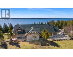Introducing The Estate on Michaels Bay, a rare 116-acre waterfront property on Manitoulin Island offering unmatched commercial potential. With 928 feet of shoreline on Lake Huron, this estate features a 9,000 sq ft log lodge, 3,000 sq ft guest house, 3,600 sq ft heated workshop, private lake, and a 2,500 ft air strip allowing direct access from Toronto in just 85 minutes by private plane. There is also a commercial airport with a 3,500 ft runway capable of handling executive jets just 40 minutes away from the property. The MS Chi-Cheemaun ferry from Tobermory to Manitoulin Island is 20 minutes away. Previously operated as a restaurant, the property is primed for revival as a destination dining venue or luxury hospitality experience. Its layout and amenities make it ideal for a corporate retreat, wellness resort, or boutique lodge. Development for a golf course was initiated, with fairways already cleared offering a head start for investors looking to complete and brand a signature course. The main residence boasts vaulted ceilings, radiant in-floor heating, a dramatic 4-sided stone fireplace, luxury kitchen, spa-like primary suite, and expansive entertainment spaces. The guest house includes 4 bedrooms and 2.5 baths, while the workshop offers oversized garage doors, EV charging, and an unfinished apartment. Backing onto 500+ acres of protected conservation land with hiking trails, this gated estate blends privacy, adventure, and upscale infrastructure. Whether reimagined as a resort, executive retreat, or legacy investment, this property delivers a once-in-a-lifetime opportunity to shape a premier destination in Northern Ontario. Manitoulin Island is the Largest Fresh Water Island in the World with stunning natural beauty, including beautiful waterfalls, sandy beaches, and numerous lakes and trails. It's a popular destination for camping, hiking, and stargazing, offering a tranquil escape into nature. The island is easily accessible by vehicle, airplane and boat. (id:47351)