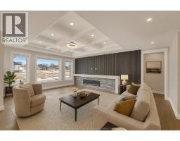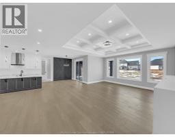 NOW BUILDING IN RUTHVEN – KINGSVILLE | SLEIMAN HOMES Introducing this custom-built 2,153 sq. ft. ranch-style home located in the prestigious Queens Valley Development. This thoughtfully designed residence offers 3 bedrooms, 2.5 bathrooms, and an elegant open-concept layout finished with premium hardwood flooring throughout. The gourmet kitchen showcases quartz countertops, a large island, and high-end finishes, opening to a spacious family room with a fireplace and oversized patio doors leading to a raised, covered cement porch—perfect for outdoor entertaining. The primary suite features a tray ceiling, luxurious ensuite bath with double sinks, a soaker tub, and a glass shower. Additional highlights include a main-floor laundry room, a double-door finished garage, outdoor pot lights, and a full unfinished basement with rough-ins, insulation, and endless potential for customization. Constructed with brick, stone, and stucco exterior, this home is set on a generous lot with impressive curb appeal. Built with top-quality materials and workmanship, this home includes a 7-Year Tarion Warranty for added peace of mind. Exterior finishes are negotiable. Multiple lots and floor plans available. Some photos are virtually staged. Buyer to verify taxes, zoning, and all measurements. Photos from previous models &virtual Staging - MODEL HOME AT 1944 SANNITA (id:47351)