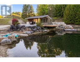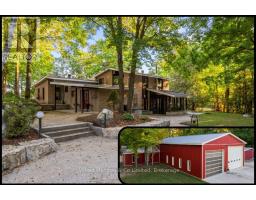 Set on 8.9acres, this first time on market, one-of-a-kind property invites you to live, work, and play without compromise. Featuring a 4 bed, 2 bath 2800sqft home, 4784sqft commercial grade shop with offices, 850sqft outbuilding, & 320sqft cabin with bathroom overlooking the pond. With parking for over 20, this property is designed for convenience, gatherings, and the flexibility to expand your business. Step inside the imaculate mid century modern home and discover a space that balances warmth & function. Characterized by clean lines, open-concept layout, and a deep connection to nature through expansive windows and the integration of wood, stone, and brick accents. The foyer welcomes you, leading into a sun-filled, open-concept dining and kitchen area where custom cherry wood cabinetry, granite countertops, and built-in appliances combine elegance and practicality. Off the kitchen, a bright sunroom with heated floors and a wood stove frames stunning country views, the perfect spot for coffee at sunrise or a glass of wine at dusk. The living room, with its soaring 12ft ceilings and custom stone fireplace, leads to the primary suite, where 6 large windows overlook the landscaped yard. Upstairs, 3 bedrooms and a full bathroom with dual sinks offer plenty of space. The finished basement features a large rec room, custom cabinetry, laundry room, and a cold cellar. Just steps from the home is a 4,784sqft. heated shop; complete with in-floor heat, 3 overhead doors, 3 offices, parts room, 2pc bathroom, plus a 1 bed, 1 bath apartment. The property also includes a smaller heated outbuilding/garage, and beside the spring fed pond is a cabin. Surrounded by towering trees, and complete privacy, this is made for bonfires, paddle boating, and summer barbecues. At night, relax by the woodstove as you watch the glow of a private waterfall. This property isn't just a home, it's a lifestyle. A private country sanctuary where your business, family, and leisure can thrive together. (id:47351)