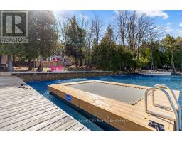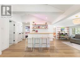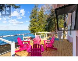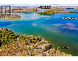 Start your day with uninterrupted sunrise views dancing across Lake Eugenia. Welcome to 194 Wiles Lane - a design-forward waterfront retreat offering 100 feet of private shoreline, a floating dock, gently sloped shorelines, and panoramic lake views from nearly every principal space.The two-tier deck, framed in glass, creates a seamless transition between indoors and out - complete with a built-in hot tub overlooking the water. This is lake living curated for both quiet mornings and sophisticated summer entertaining.Inside, vaulted ceilings and expansive windows flood the home with natural light. The statement fireplace, finished in custom blush tile, and the vaulted ceilings anchor the living room with warmth and architectural presence. The open-concept kitchen pairs elevated finishes with function: a stunning stone island with seating for four, rich emerald tile backsplash, brushed gold hardware, and plenty of cabinetry - flowing effortlessly into the dining space where sliding doors extend gatherings onto the deck against a lakefront backdrop.A secondary lounge and bar area offers a refined setting for evenings in, while three beautifully appointed bedrooms - each with individual A/C - provide comfort for guests. The shared bath is thoughtfully finished, while the primary suite is a private sanctuary featuring a spectacular ensuite with a freestanding tub, glass shower, dual vanity, and a lofted dressing retreat, also ideal as a reading lounge or private workspace.Turnkey and impeccably styled, this property offers exceptional lifestyle flexibility - whether enjoyed personally or positioned as a high-end short-term rental. Located just 25 minutes from Collingwood and 10 minutes to Beaver Valley Ski Club. 194 Wiles Lane is an elevated expression of lakefront living. (id:47351)