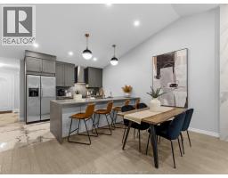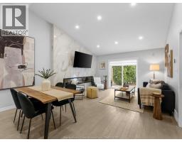 Completely renovated top to bottom in 2022, this beautifully updated 2+1 bedroom, 3 full bathroom townhome is located in a highly desirable East Windsor neighbourhood. Every detail was redone, including the bathrooms, kitchen, flooring, tile, paint, light fixtures, and pot lights throughout — truly move-in ready with modern finishes from top to bottom.The main floor features two spacious bedrooms, a convenient laundry area, and engineered hardwood flooring. The custom open-concept kitchen is the heart of the home, showcasing a stunning waterfall island, quartz countertops, and 2x2 tile in the kitchen area. The space flows seamlessly into the dining and living area, highlighted by a large feature wall with a high-efficiency electric fireplace and vaulted ceilings that create a bright, airy feel. The primary bedroom offers a walk-in closet and a beautifully updated ensuite bathroom. Step outside to your private cement patio — the perfect place to enjoy your morning coffee or relax in the evening. The fully finished basement is a gorgeous entertainer’s dream, complete with a second large fireplace, a custom bar with granite counters, a third bedroom, and its own three-piece bathroom — ideal for guests or extended family. Additional updates include a newer AC unit, new washer and dryer, and a new stove. The $115/month HOA fee covers snow removal, grass cutting, aerating, fertilizer and weed control, fall clean-up, and roof maintenance, making for easy, low-maintenance living. Close to all amenities and just steps from Blue Heron Pond and scenic walking trails, this home truly has it all. Viewing offers as they come! (id:47351)