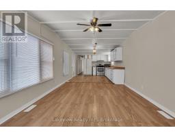 Welcome to 197 Cree Lane in Lakeside Estates - a bright , well-maintained 3-bedroom mobile home offering approximately 800 sq. ft. of comfortable living space on a quiet dead-end street. The third bedroom could could be used as family room or den as its adjacent to patio doors to side private yard. This home has been freshly painted throughout and features new flooring in the kitchen, laundry room , bathroom and front entrance vestibule, giving it a clean, updated feel. The front entrance is generously sized (approx. 5.5' x 8') - large enough to accommodate a church bench for easy boot removal - and includes a closet, additional storage space, and coat hooks for added convenience.The kitchen has plenty of cabinets & room for kitchen table or island for additional counter space and/or sharing a coffee . Kitchen appliance includes stove, fridge and microwave . The home also includes a clothes washer and dryer, making it fully functional and move-in ready. A gable roof was added several years ago, enhancing both curb appeal and long-term durability. Off the hallway near the end bedroom, sliding patio doors lead to a very private ground-level sitting area - perfect for a BBQ and patio gas table for summer outdoor dining & entertaining At the front of the home, enjoy a covered sitting area and an 8.4' x 9.3' front deck ideal for morning coffee or relaxing evenings. The property also includes a storage 8'x10' shed and a nicely landscaped private yard. Located less than a block from Lake Simcoe and beautiful Kitchener Park, you'll have immediate access to modern children activity playgrounds, soccer fields, baseball diamonds, and waterfront beach area to skip some stones- or swim, a fantastic setting for families or retirees alike. Affordable living in a peaceful lakeside community - move in ready don't miss this opportunity.This fee includes: Lot Lease, Water/Sewer charges, Garbage Pick up, Snow Removal from Streets. All offers must be conditional on Park Approval. (id:47351)