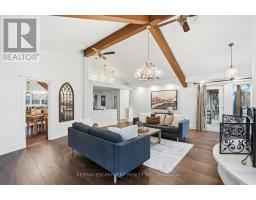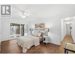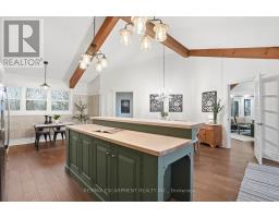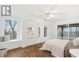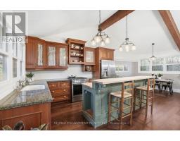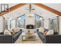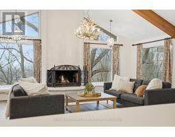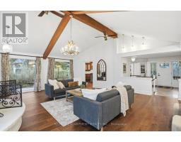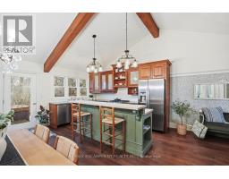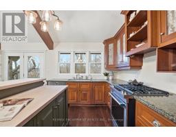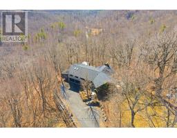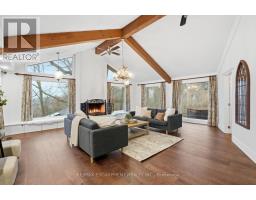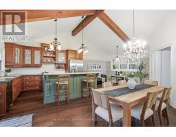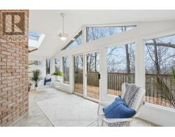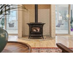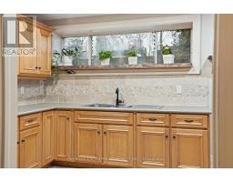 Tucked away on a picturesque 1-acre lot backing onto Grindstone Creek, this beautifully renovated raised bungalow offers the ultimate in privacy, tranquility, and multi-generational living. Surrounded by mature trees and natural beauty, this truly one of a kind offering delivers peaceful, country-style living just minutes from city amenities. The main level features three spacious bedrooms, including a serene primary retreat with a private ensuite and walk-out to the primary level deck. Set high in the Carolinian tree canopy, this large outdoor space is perfect for morning coffee, entertaining, or unwinding at sunset. The bright, airy living room is highlighted by vaulted ceilings, expansive windows that flood the space with natural light, and a cozy, raised hearth fireplace as its focal point. The custom made, cherry wood eat-in kitchen blends function and style, showcasing stainless steel appliances, granite countertops, and ample cabinetry-ideal for both everyday living and entertaining. The fully finished walkout basement offers excellent versatility with a self-contained in-law suite featuring a separate entrance, one bedroom, a full bathroom, dedicated laundry, a large great room with gas woodstove, and a bonus three season sunroom leading to a private outdoor deck-perfect for extended family, guests, or potential rental income. This exceptional property offers a unique lifestyle opportunity in one of Burlington's most desirable and undiscovered settings. RSA. (id:47351)