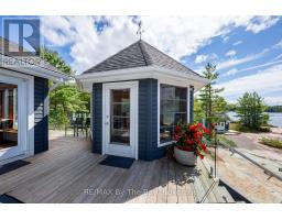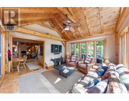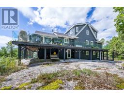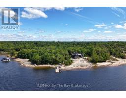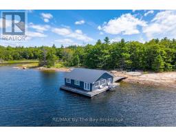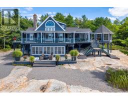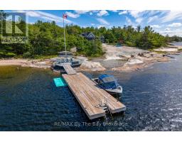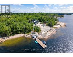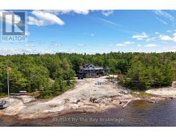 This property is truly a private paradise on the clear waters of Georgian Bay, where 20 spectacular acres of trees, granite and over 1700 feet of waterfront await your arrival. This exceptional 2 1/2 storey, 5-bedroom, 4-bathroom post and beam cottage offers the perfect blend of rustic charm and modern comfort, creating an unforgettable lakeside sanctuary. Your adventure begins with a scenic 15-20 minute boat ride from Honey Harbour Marinas, delivering you to this secluded haven near the Musquash River Mouth. Enjoy the convenience of multiple docking systems and a floating double wet boathouse. The granite shore deck near the sandy beach area creates an elegant transition to the property. Landscaping combines crushed granite pathways with natural exposed rock formations creating stunning visual interest. Glass railings grace the expansive decks, providing unobstructed views and a louvered pergola system on the upper deck allows you to curate your outdoor experience. The main floor has a primary bedroom with ensuite, complemented by a convenient 2-piece bathroom and generous storage areas. The heart of the home features an open concept kitchen/dining area with spacious living room and a cozy wood-burning fireplace. A secondary sitting room provides additional gathering space for quiet moments. The walkout basement level transforms into an entertainer's dream with two additional bedrooms, bathroom facilities with separate shower, and a games room featuring its own wood-burning fireplace. The sunroom offers breathtaking water views and serves as the perfect morning coffee spot. A charming bunkie provides additional guest accommodation or serves as a peaceful retreat space. The western exposure ensures spectacular sunsets that paint the sky each evening, creating magical moments that will become treasured family memories. This remarkable waterfront estate offers the ultimate Georgian Bay experience, where natural beauty meets thoughtful design in perfect harmony. (id:47351)