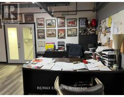 Excellent unit for smaller businesses or investment potential! Main floor features a built-in Reception desk, boardroom with kitchenette, 2 pc powder room, & entrance door to warehouse space with a drive-in overhead door! 2nd floor mezzanine features 2 large office areas - one overlooks the warehouse and the other features a kitchenette and another bathroom! 13 Security cameras included! This unit has 3 assigned parking spots in the front, and room to park 2 more vehicles by the overhead door in rear of building! (id:47351)